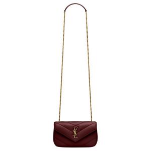 SAINT LAURENT Lambskin Crossbody Bag, Shoulder Bag Mini Women's Cabernet Sauvignon Red 821749-AAEAX-6197 size 20*5*12 cm