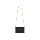 SAINT LAURENT ENVELOPE Quilted Grain Embossed Leather Envelope Bag Wallets Shoulder Bag Crossbody Bag Women's Black 393953-BOW01-1000 size L19*W3.5*H12.5cm