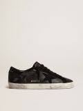 Golden Goose Super-Star de hombre de napa negra con estrella y refuerzo del talón de ante negro